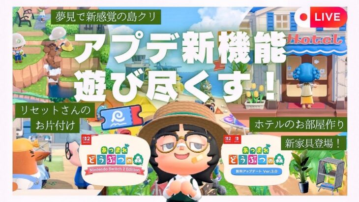【あつ森】アプデキターーー!!ホテル建設・新家具・収納拡張・夢見島クリ・リセットさん島お掃除など遊び尽くします!!